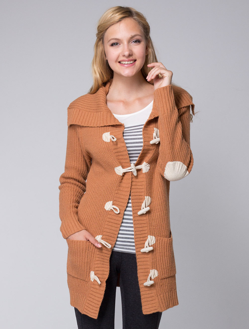 Описание: Жакет застегивается на крупные цилиндрические пуговицы, на локтях "заплатки" из искусственной замши. Внизу имеются накладные карманы.