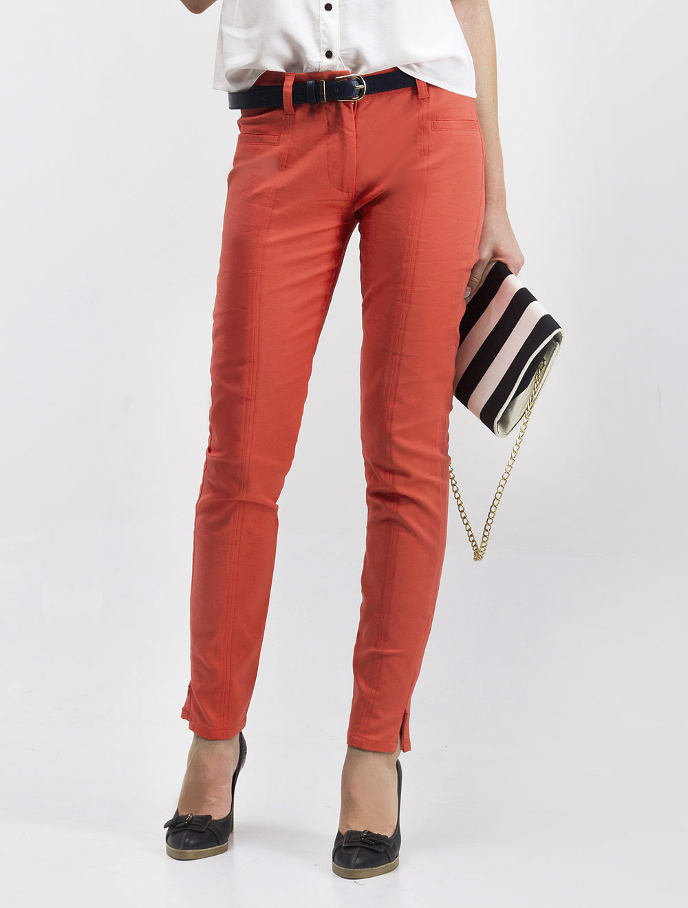 Описание: Плотный эластичный хлопок. Брюки зауженные к низу имеют декоративные строчки по центру ноги спереди и сзади. Низ брюк на потайной молнии.