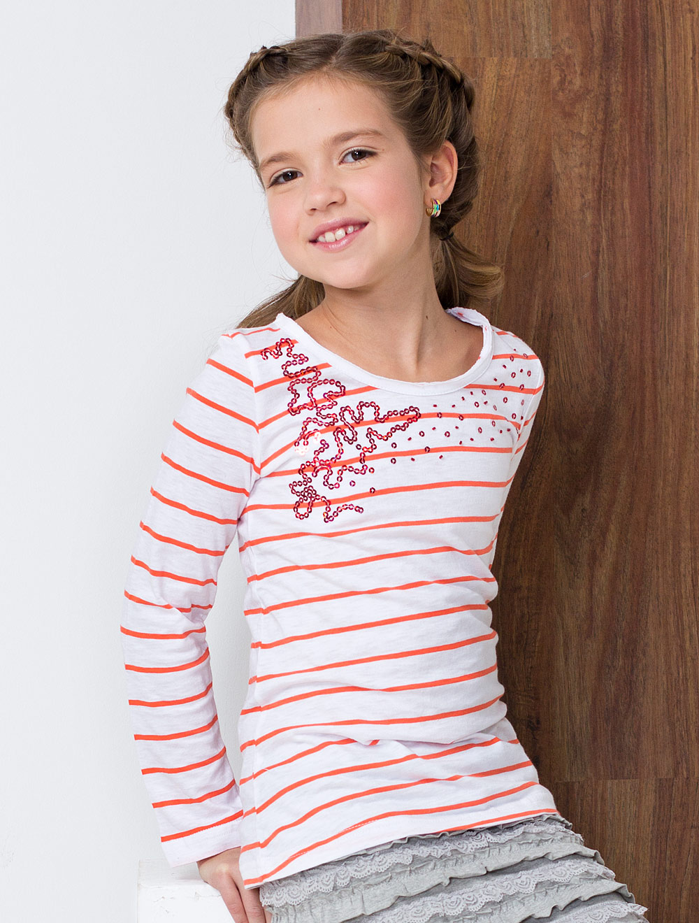 Описание: Футболка для девочки с широкой горловиной, расшита пайетками на груди.