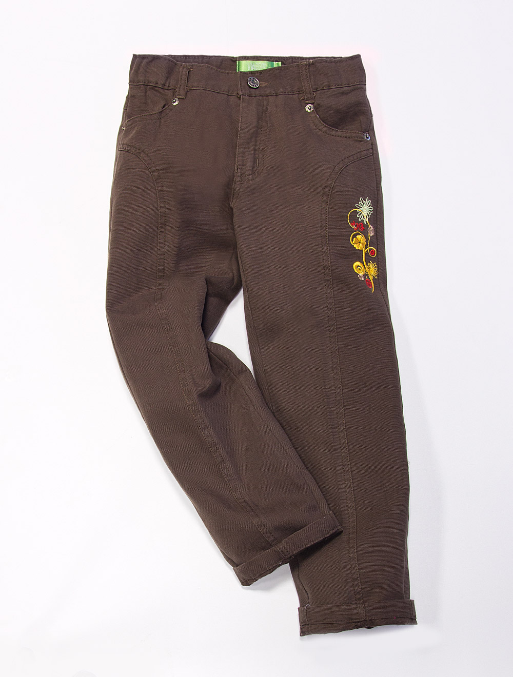 Описание: Брюки из хлопка, декорированные вышивкой.