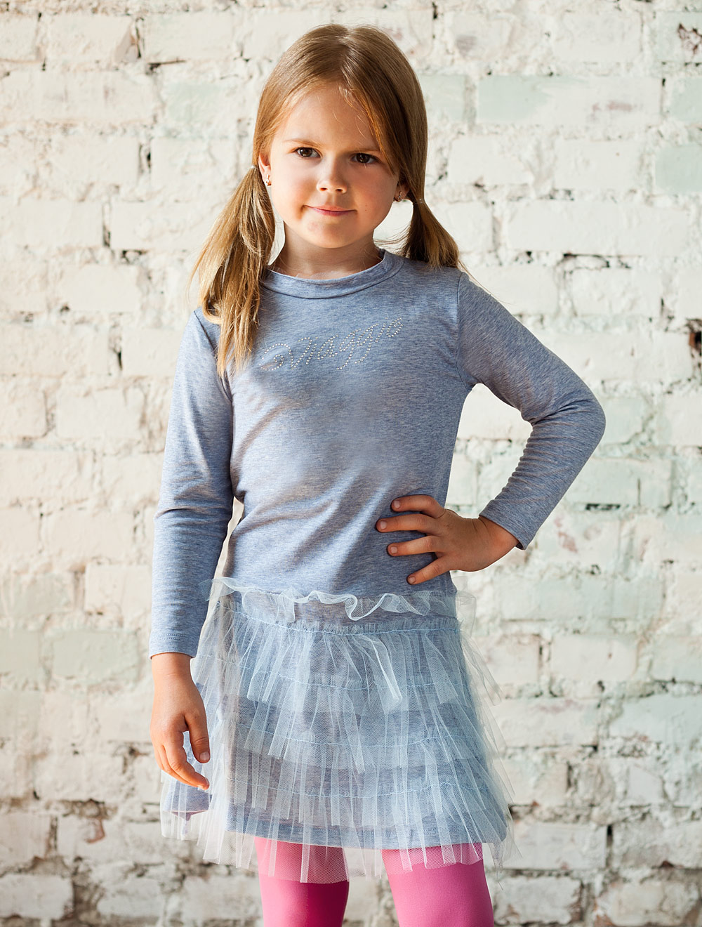 Описание: Платье из трикотажного полотна, декорированное аппликацией из стразов.