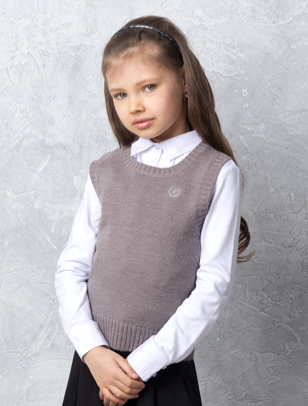 Описание: Перед и спинка выполнены гладкой вязкой средней плотности, низ изделия, проймы и горловина - вязкой "резинка". Спереди на груди вышита эмблема.