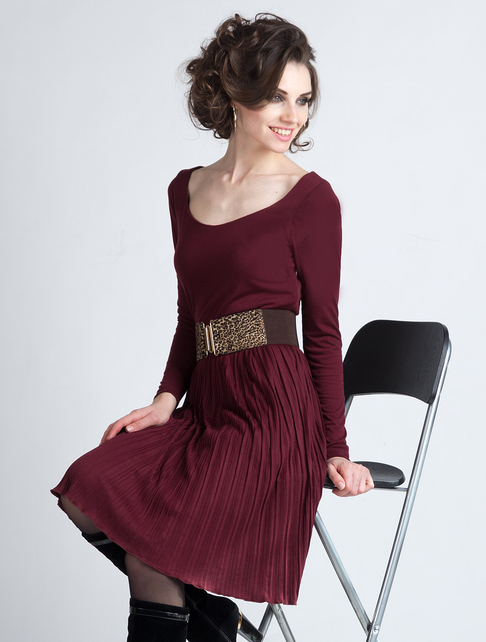 Описание: Выполнено из тонкого трикотажа, верхняя часть двуслойная для формоустойчивости. Юбка с эффектом мелкого ассиметричного плиссе, низ обработан микрооверлоком