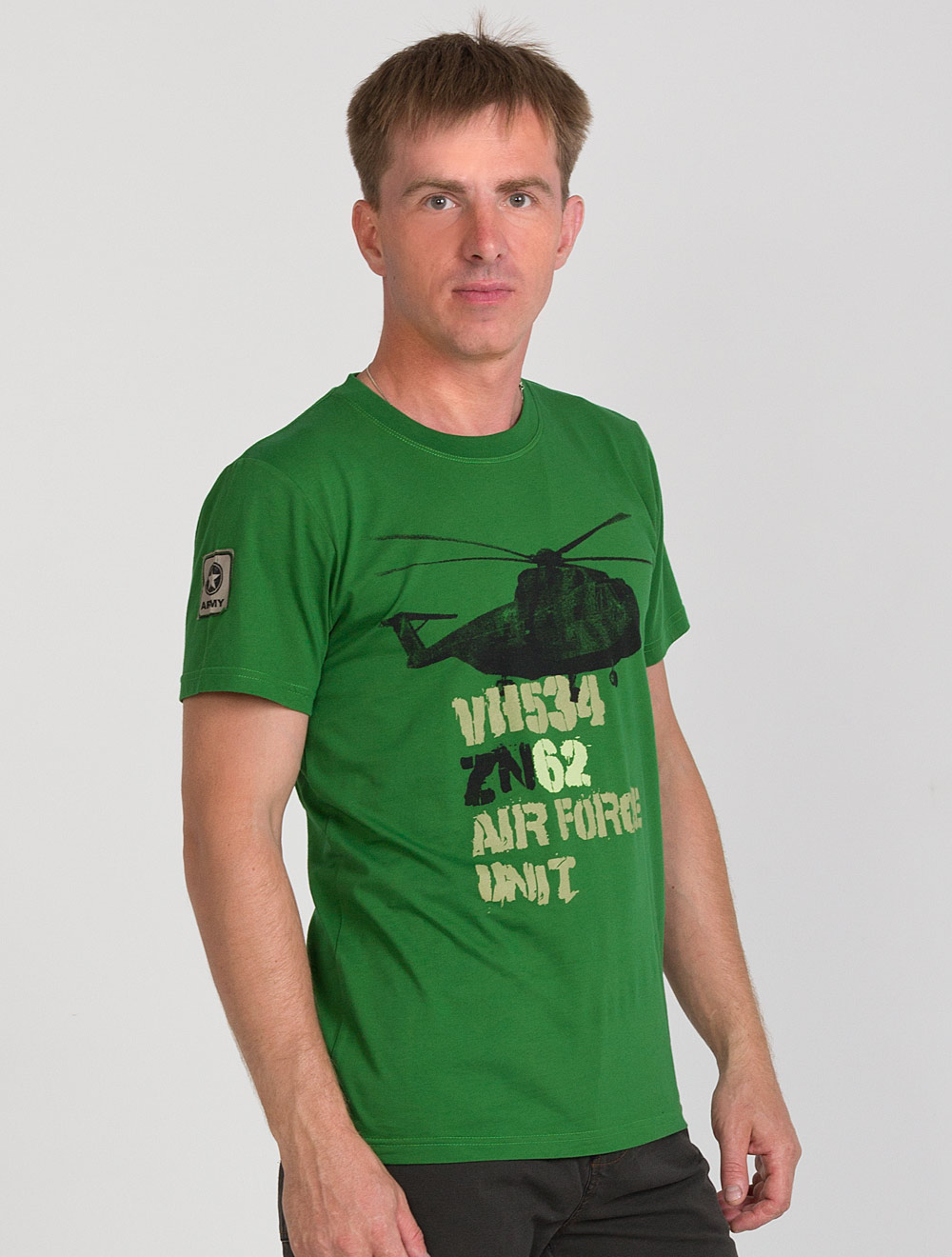 Описание: Футболка с принтом на груди, и эмблемой на рукаве.