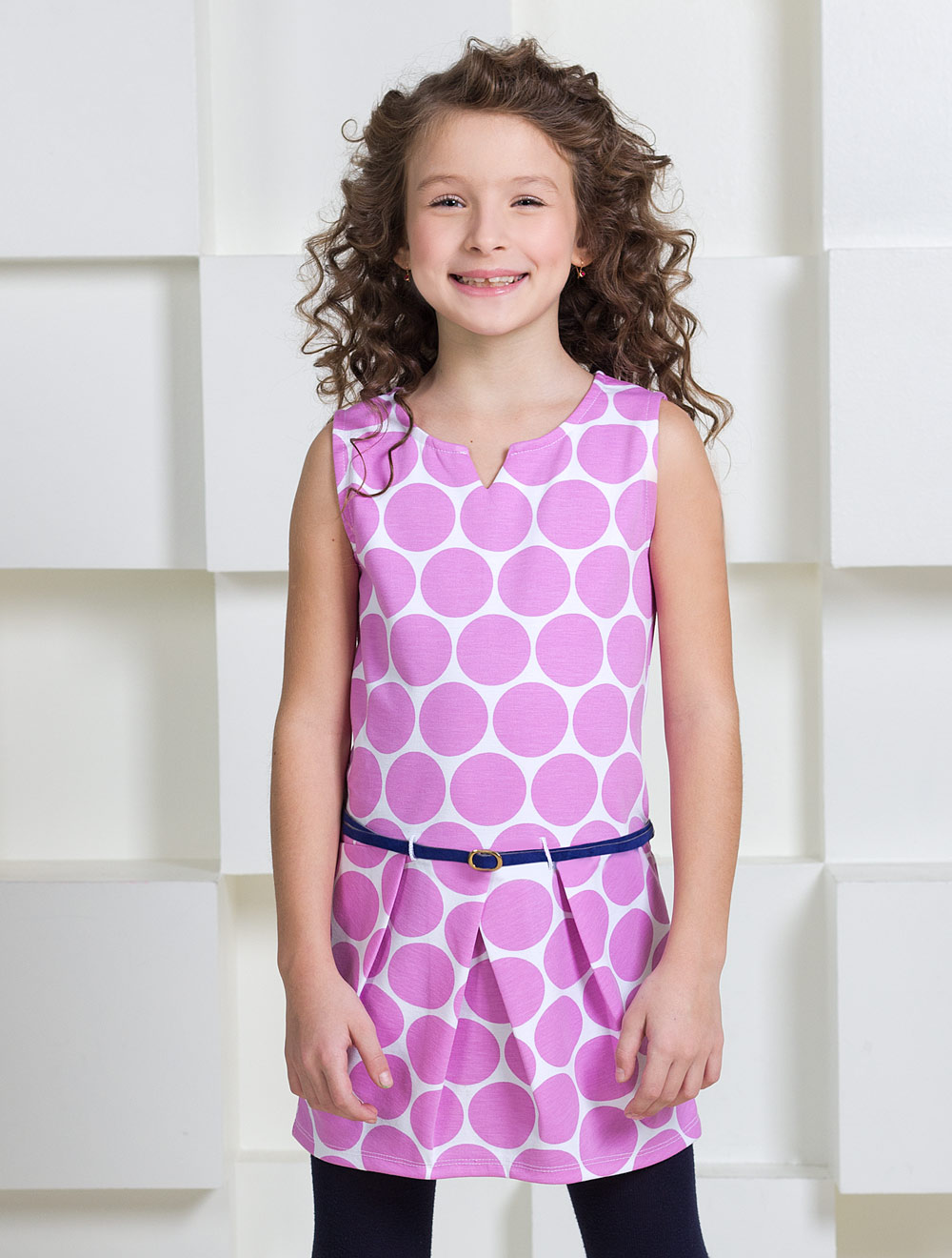 Описание: Платье отрезное чуть ниже талии, из плотного трикотажного полотна с поясом контрастного цвета. Юбка с наклонными встречными складками.