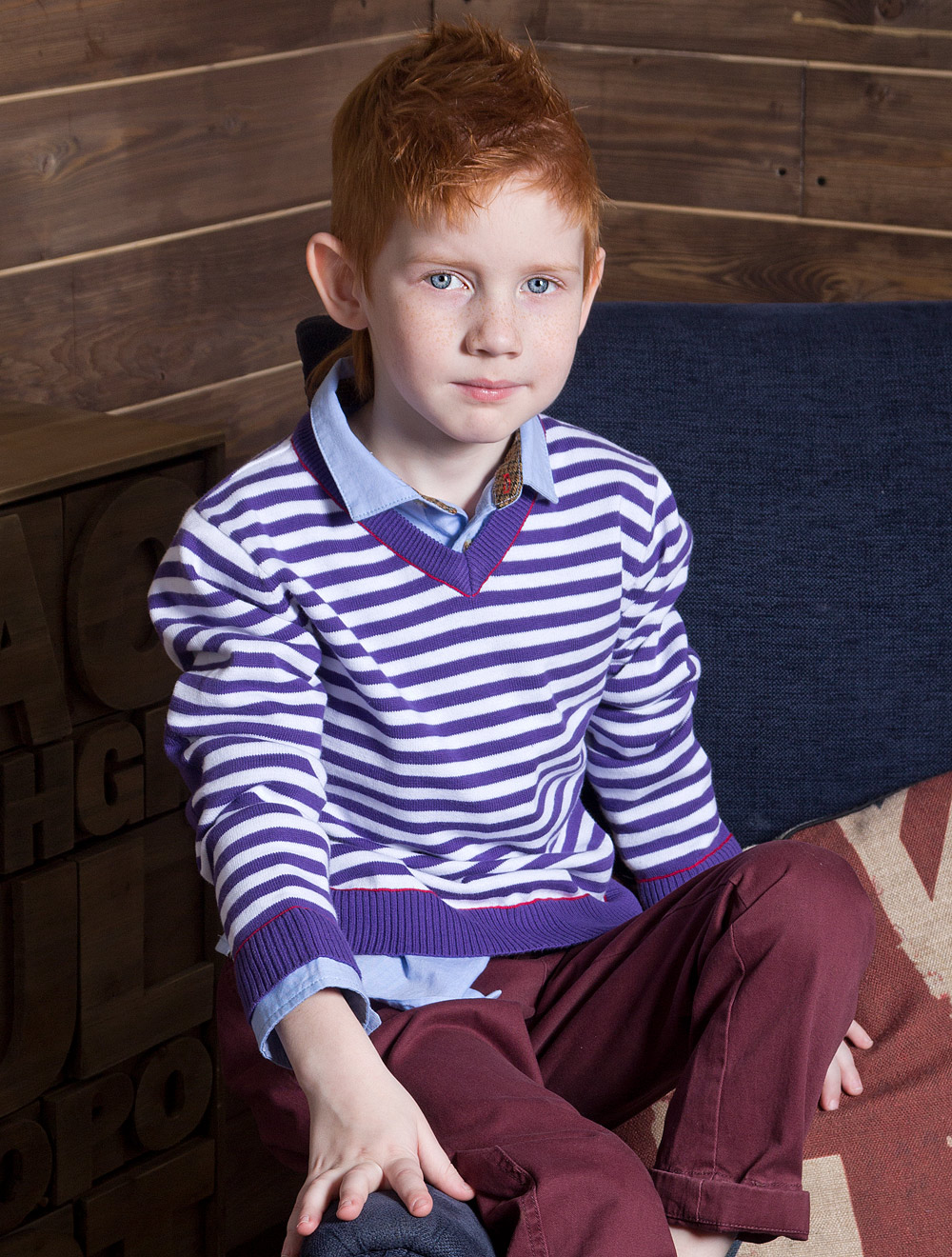 Описание: Джемпер из хлопковой пряжи, декорированный контрастной строчкой.