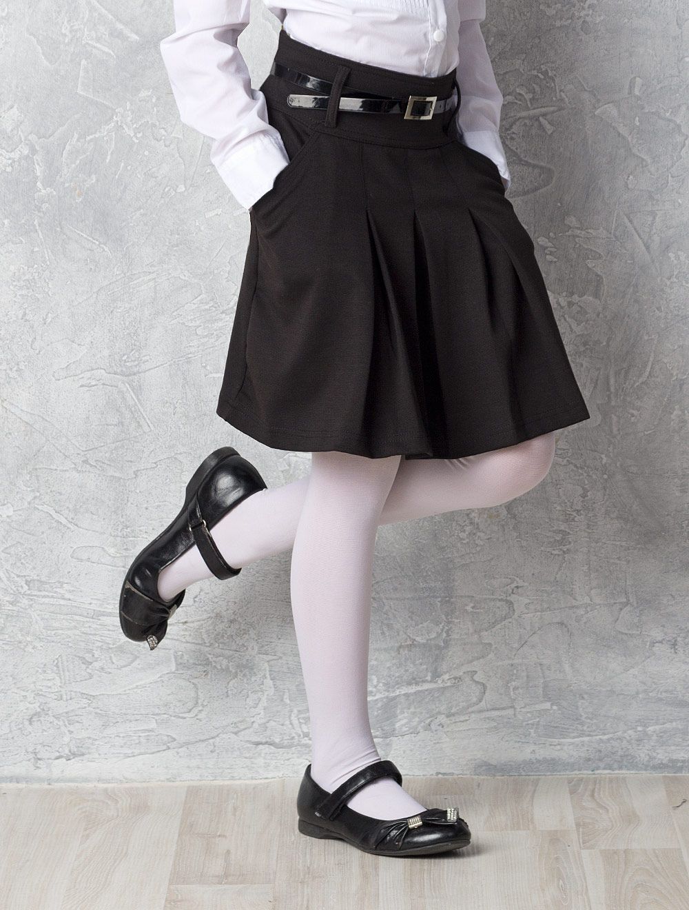 Описание: Юбка с тремя глубокими встречными складками спереди.