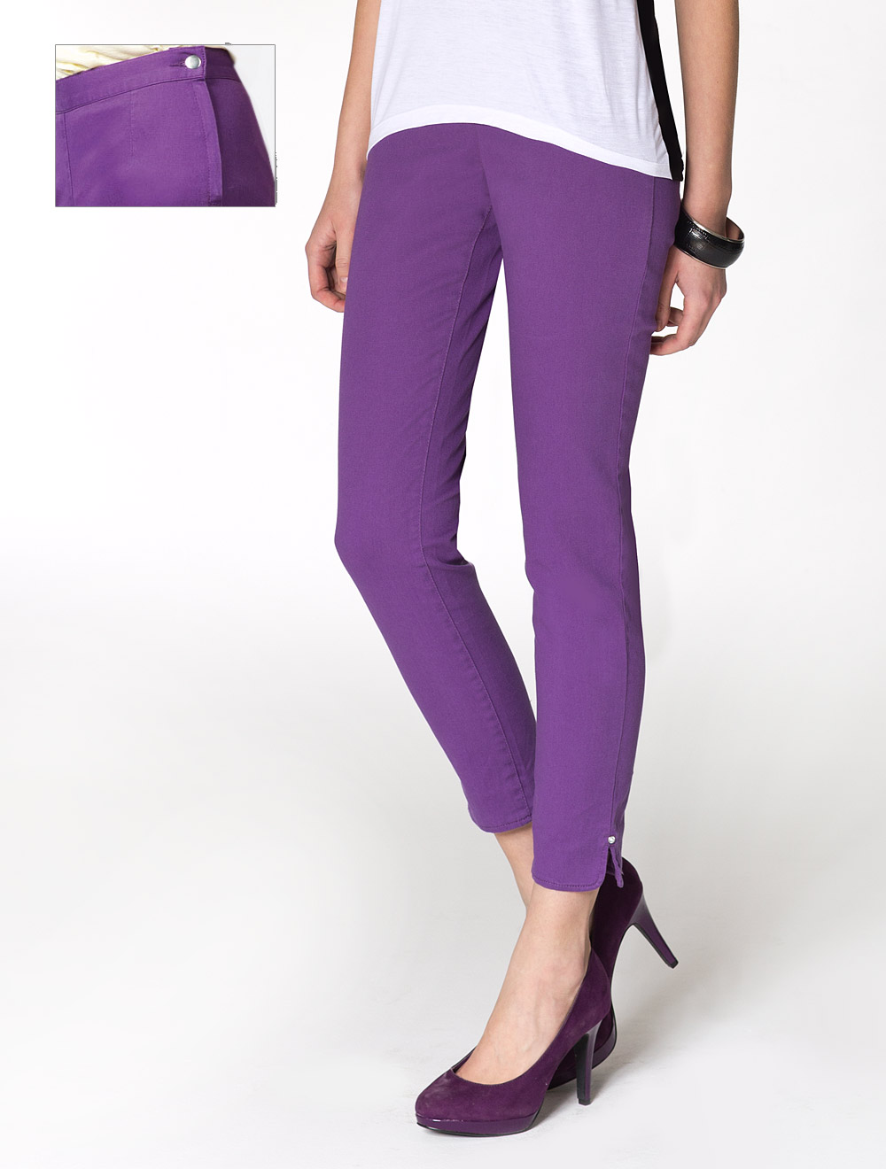 Описание: Узкие брюки из эластичного хлопка. Застежка в боковом шве. По бокам внизу оформлены декоративные уголки и небольшие разрезы.