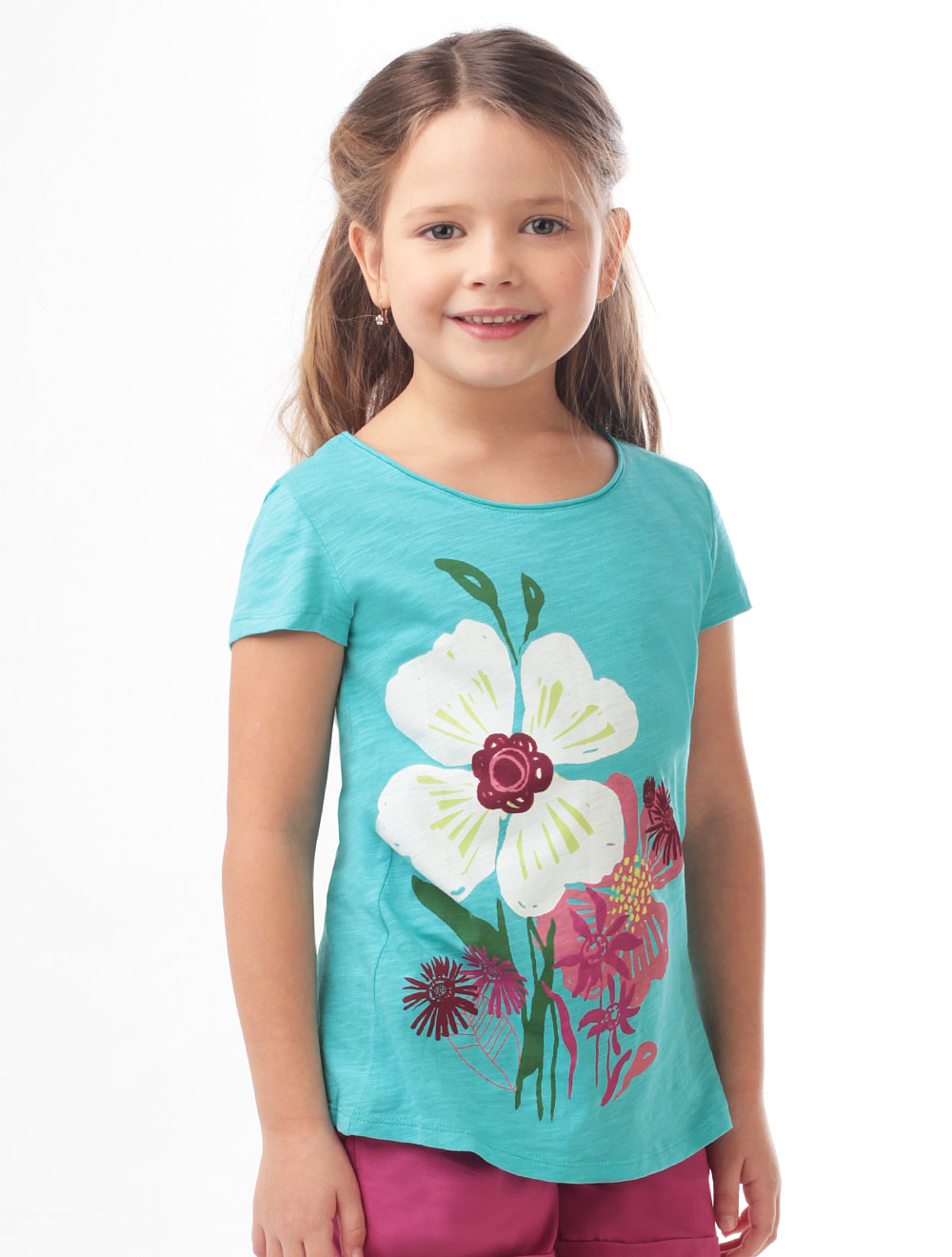 Описание: Футболка из фактурного хлопкового трикотажа, декорированная принтом.