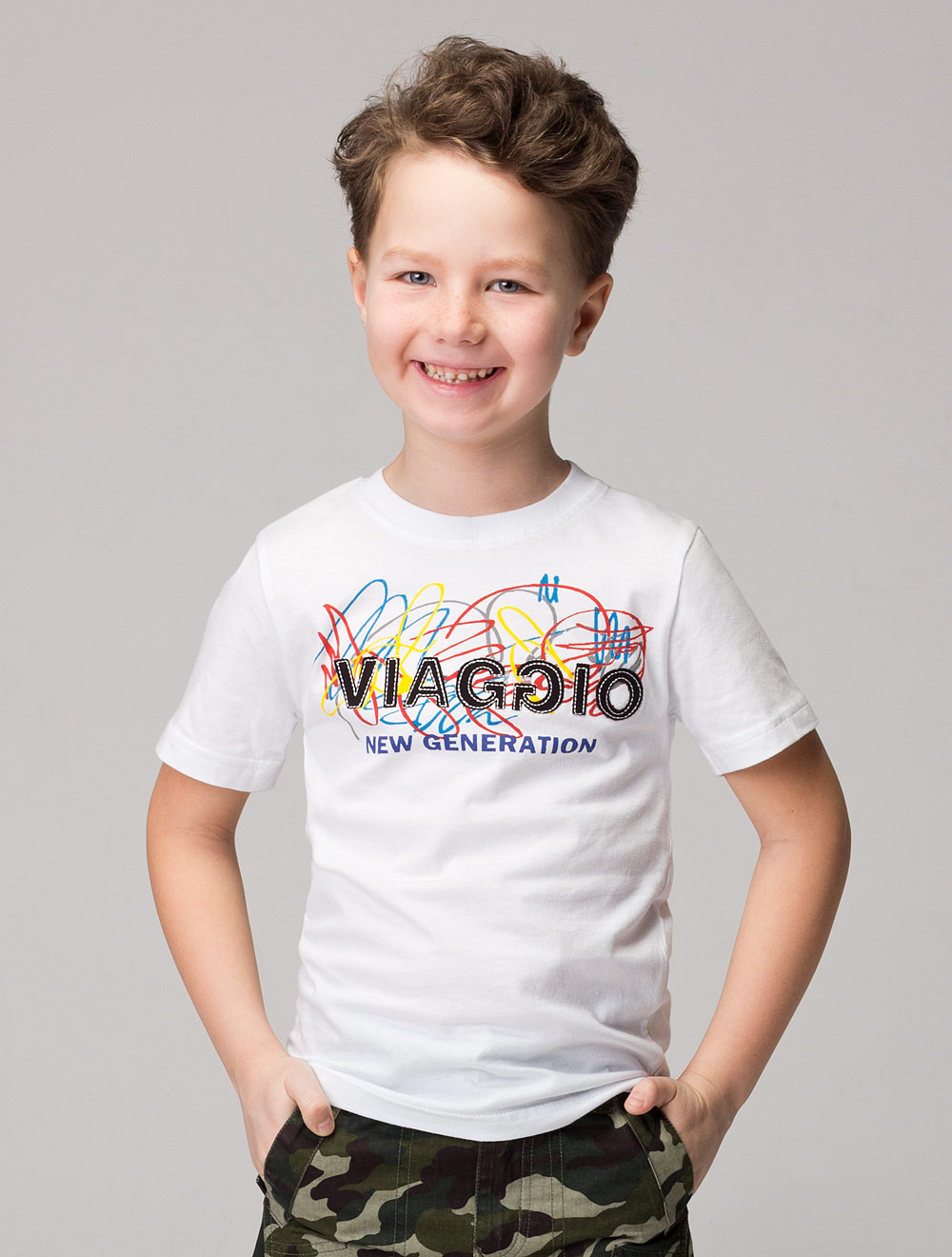 Описание: Фантазийная нашивка Viaggio и цветной принт c надписью new generation.