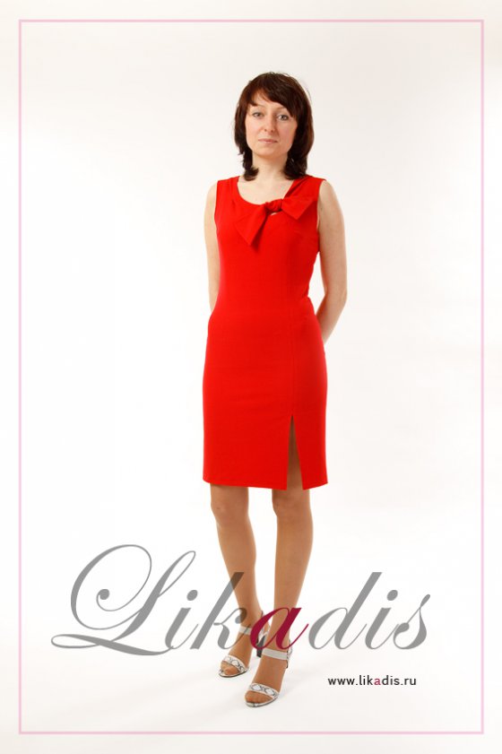 Описание: платье приталенное со стильным бантом на горловине и разрезом на боку. Молния на спинке.