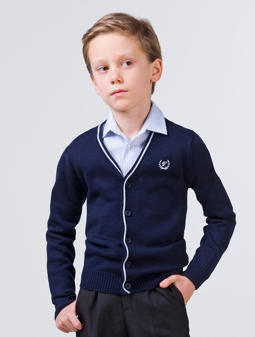 Описание: Плотная шерстяная вязка, спереди на груди вышита эмблема.
