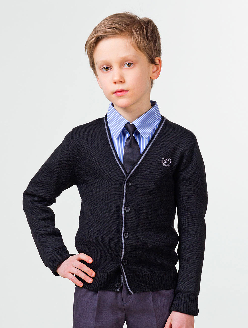 Описание: Плотная шерстяная вязка, спереди на груди вышита эмблема.