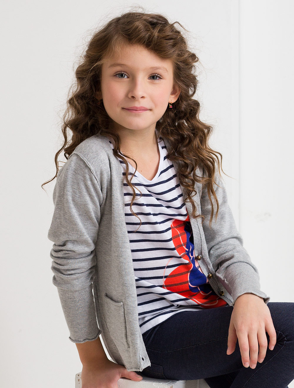 Описание: Вязаный жакет со смещенными вперед боковыми швами. Застежка на металлические пуговицы.