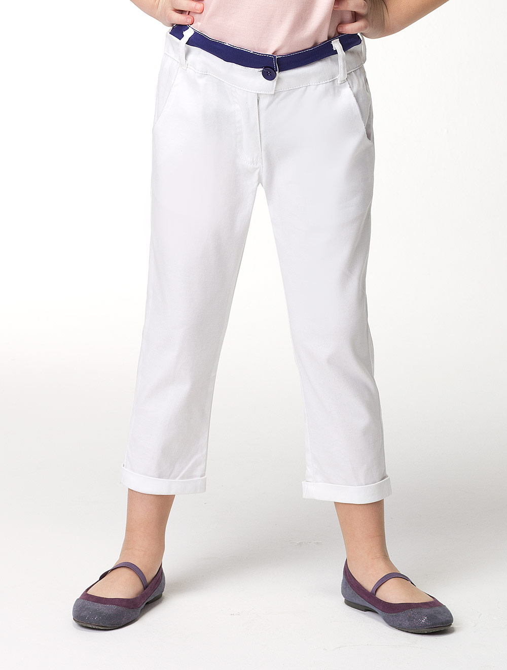 Описание: Брюки из хлопка с добавлением эластана. Пояс декорирован тканью контрастного цвета.