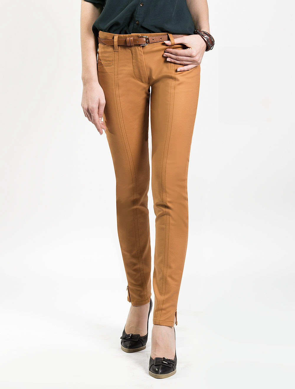 Описание: Плотный эластичный хлопок. Брюки зауженные к низу имеют декоративные строчки по центру ноги спереди и сзади. Низ брюк на потайной молнии.