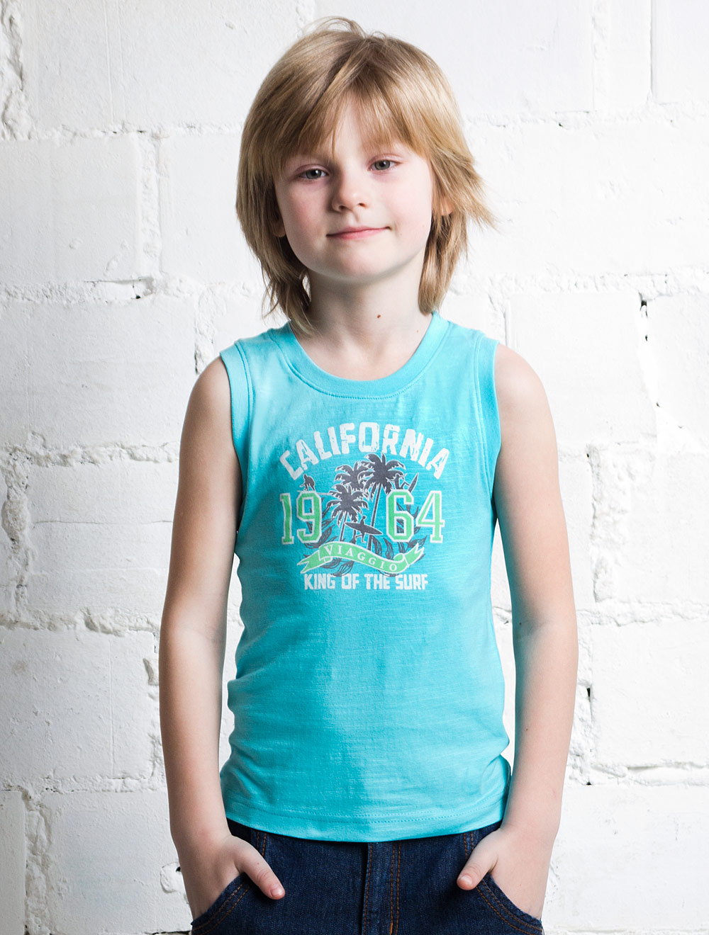 Описание: Футболка из фактурного хлопкового трикотажа с уплотнением нити в переплетении., декорированная принтом.