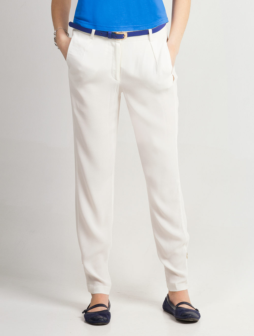 Описание: Фактурная вискоза. Сбоку внизу вставлены золотистые металлические молнии, благодаря которым можно менять силуэт изделия от свободного до "бананов".