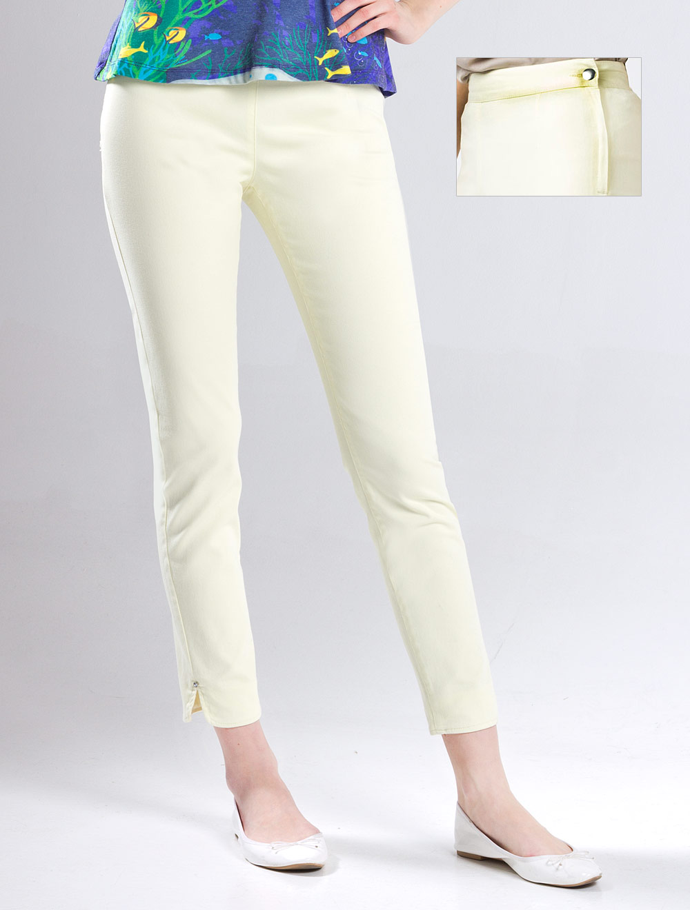 Описание: Узкие брюки из эластичного хлопка. Застежка в боковом шве. По бокам внизу оформлены декоративные уголки и небольшие разрезы.