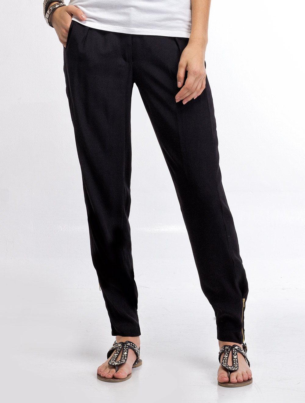 Описание: Фактурная вискоза. Сбоку внизу вставлены золотистые металлические молнии, благодаря которым можно менять силуэт изделия от свободного до "бананов".