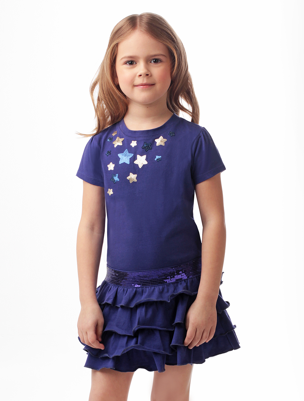 Описание: Платье из хлопоквого трикотажа, декорированное принтом и пайетками.