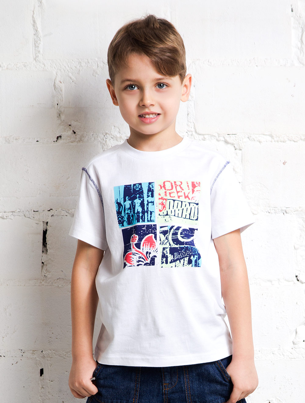 Описание: Футболка из хлопкового трикотажа, декорированная принтом и контрастной строчкой