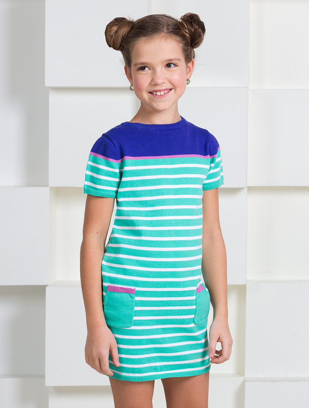 Описание: Вязаное платье из мягкой хлопковой пряжи с боковыми накладными карманами.