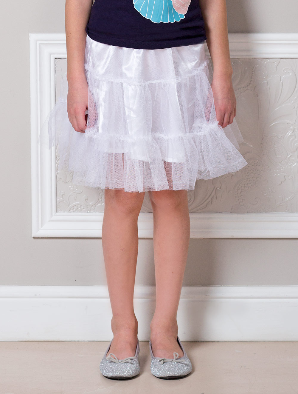 Описание: Двухслойная юбка. Верхний слой, декорированный оборками, выполнен из мягкой сетки. Нижний слой из атласного материала.