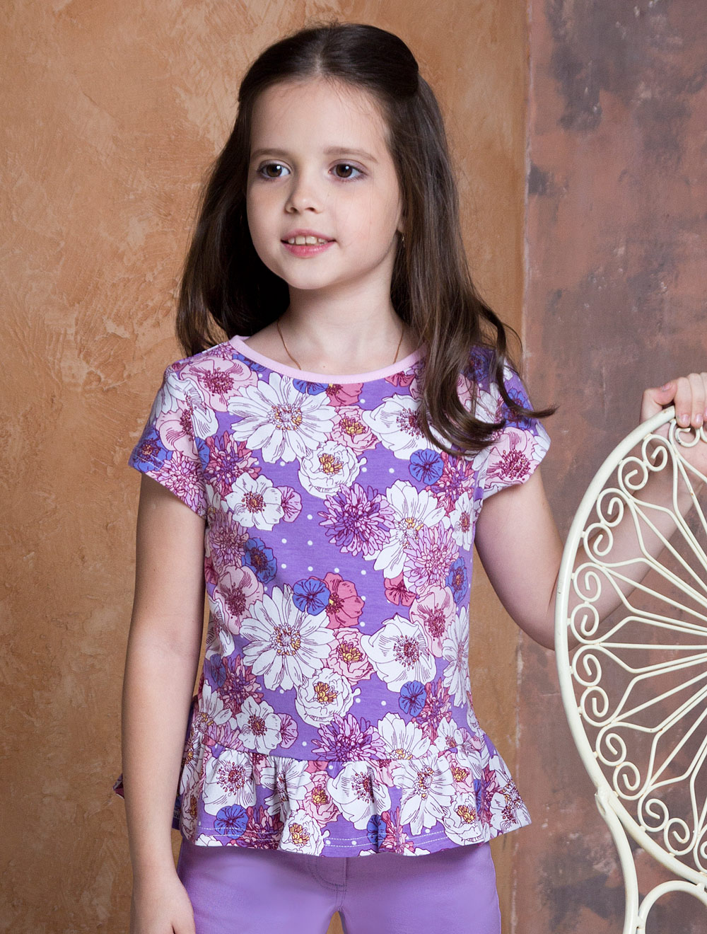 Описание: Блузка из эластичного хлопкового трикотажного полотна декорирована оборкой по низу.