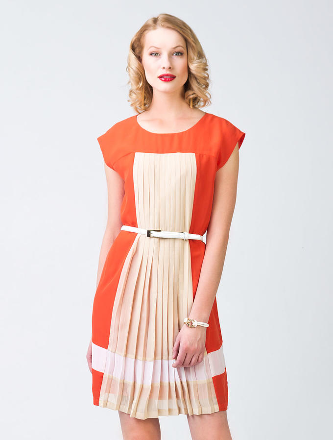 Описание: Выполнено из плотного шифона. На подкладке. Передняя часть украшена складками плиссе, застроченными на талии. Эффектно смотрится как с ремнем, так и без