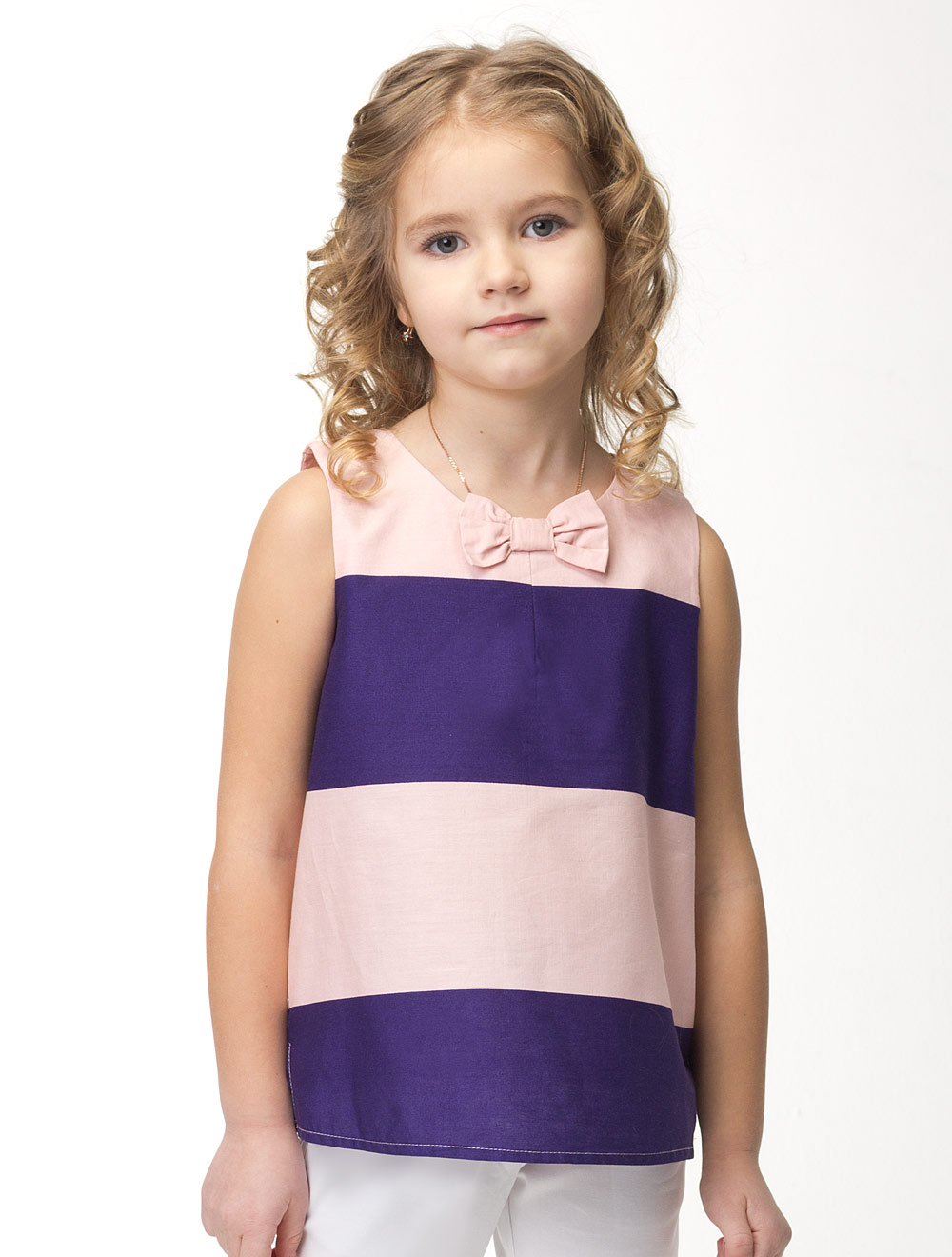 Описание: Блузка, декорированная бантом. Сзади застежка на пуговицу.