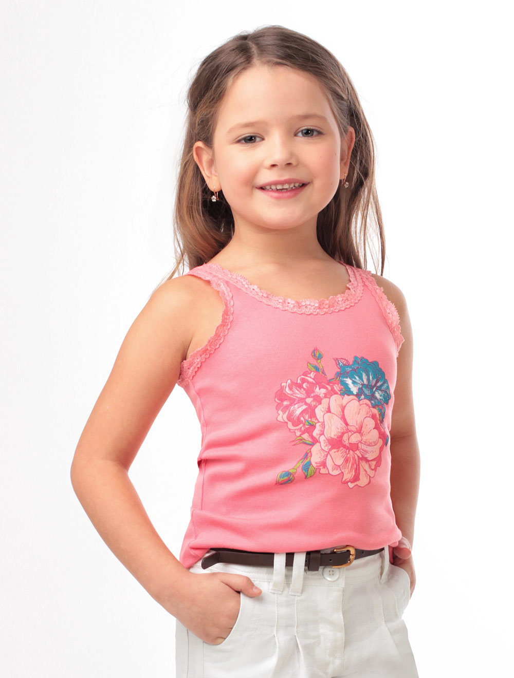 Описание: Топ из хлопкового трикотажа, декорированный эластичным кружевом и принтом.