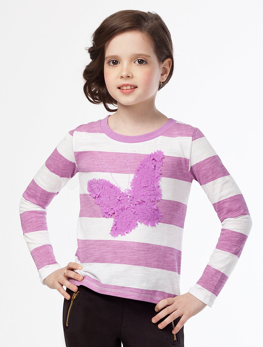 Описание: Футболка из фактурного хлопкового трикотажа, декорированная аппликацией и вышивкой.
