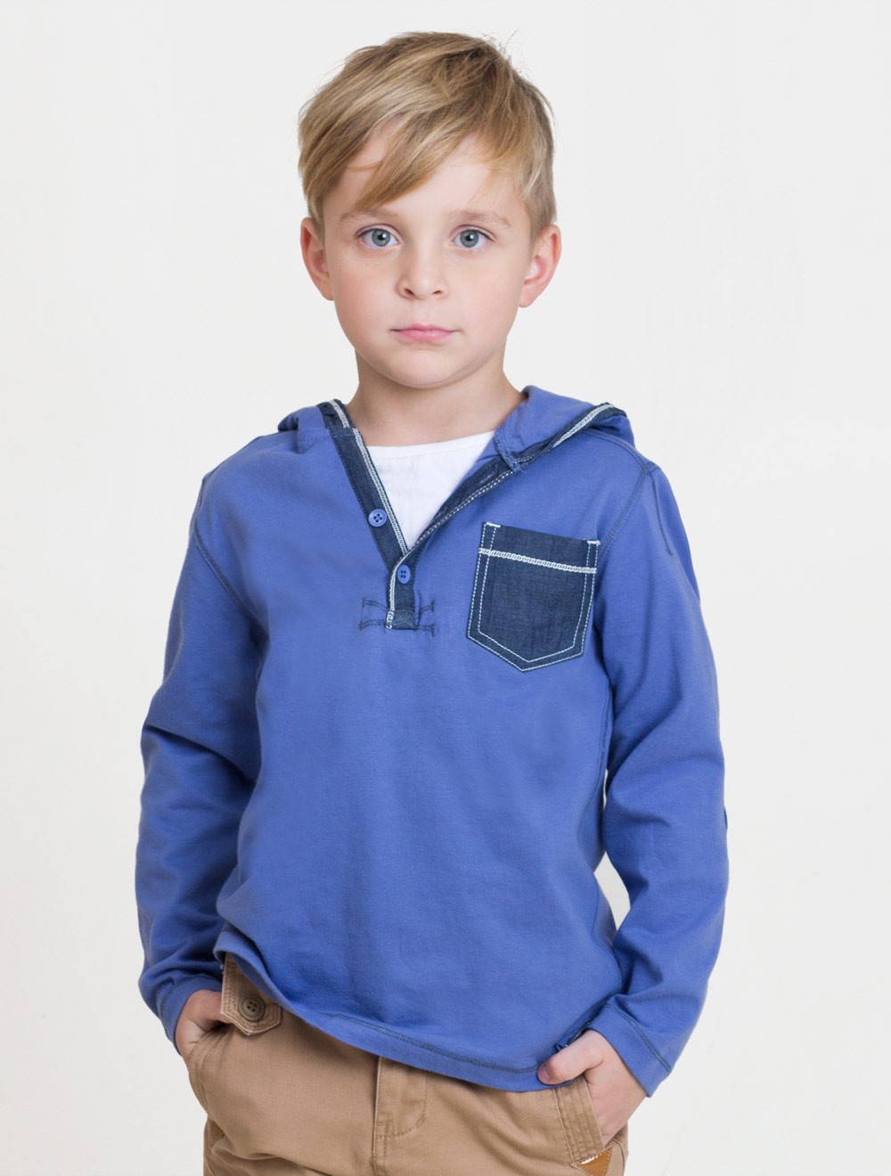 Описание: Джемпер из трикотажного полотна с капюшоном. Отделка из тонкой джинсовой ткани.