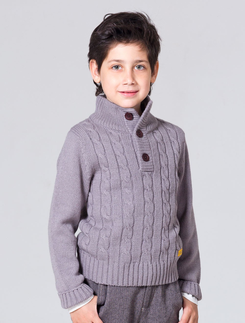 Описание: воротник-стойка, застежка на планку с крупными пуковицами