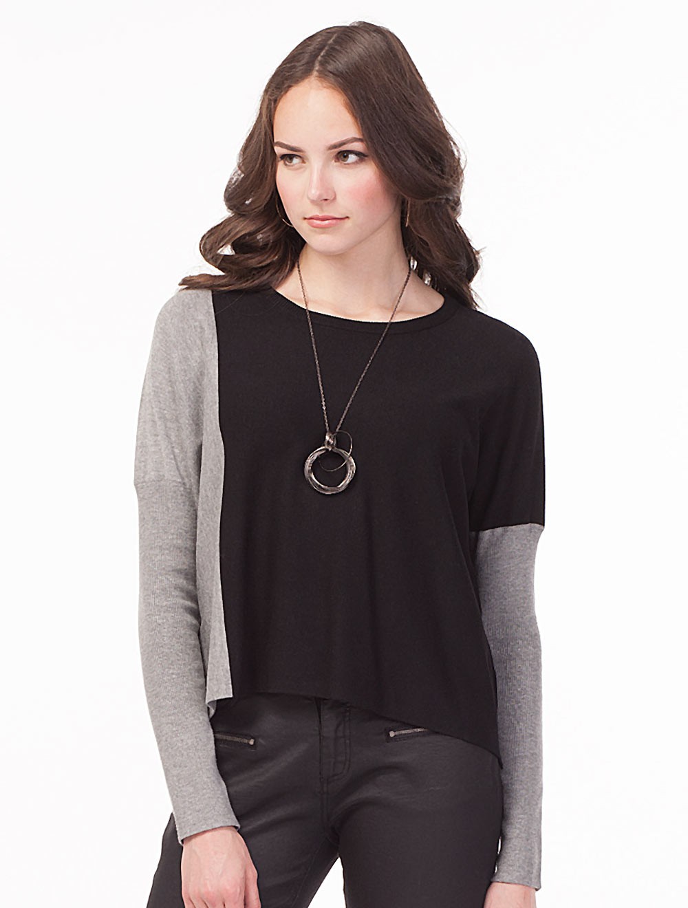Описание: Тонкая и эластичная вискозная вязка. Свободный крой переда и спинки с узкими рукавами на спущенной пройме - рецепт самого актуального силуэта. Дополнительной особенностью дизайна является ассиметричная расцветка изделия.