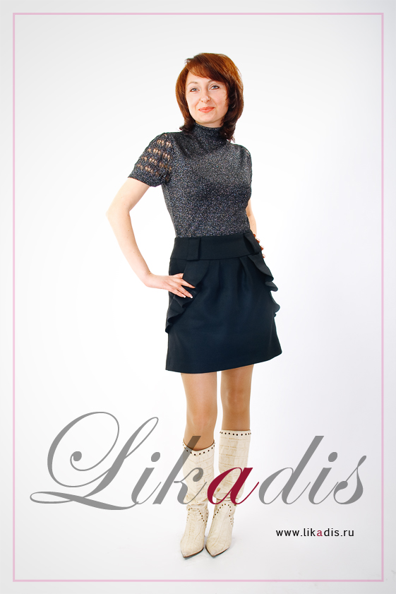 Описание: Юбка торговой марки «Ликадис», молодежная. Силуэт - трапеция, потайная молния сзади, по поясу четыре широкие шлевки, по бокам - два кармана с интересной обработкой.