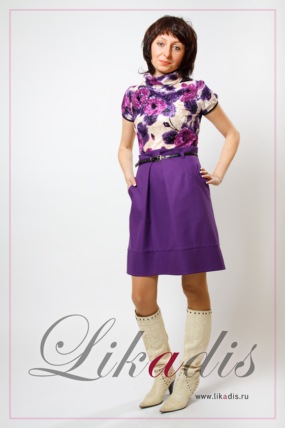 Описание: Юбка - трапеция торговой марки «Ликадис» для стильных девушек с завышенной талией. Юбка с карманами и со складками спереди. Внизу - планка на пуговичках по бокам. На подкладе, молния - застежка сзади. Ремешок прилагается. Яркая, интересная и удобная юбочка!