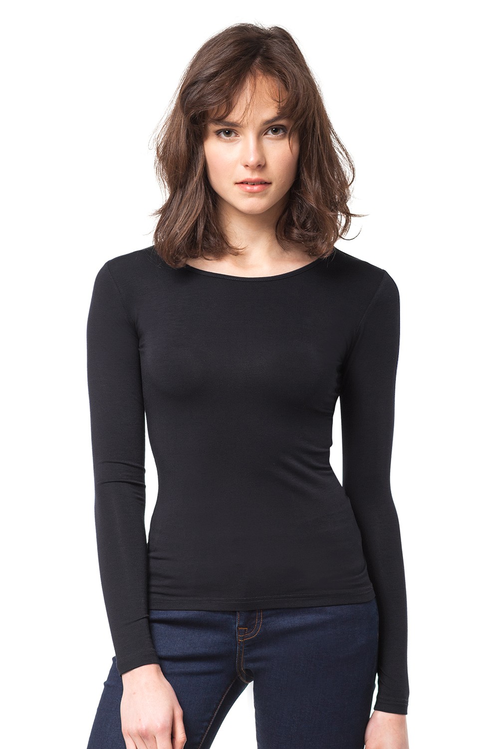 Базовая плотно прилегающая женская футболка с небольшим вырезом, сшитая из трикотажной эластичной вискозы.