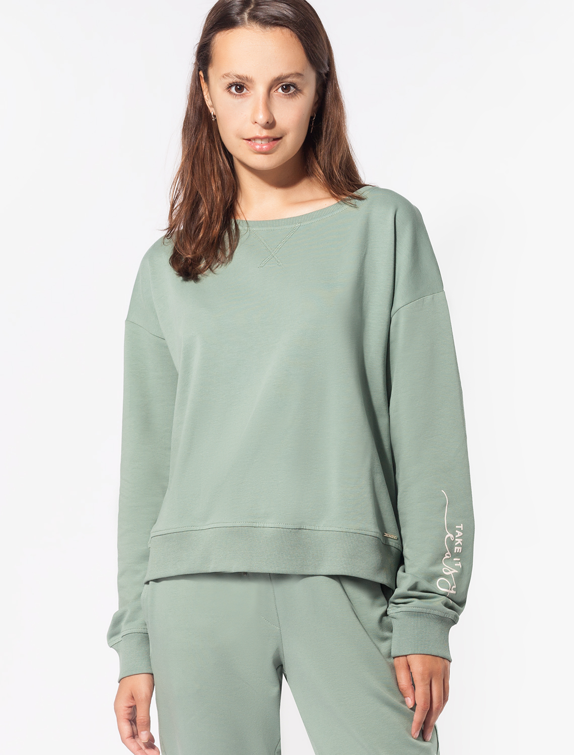 Укороченный свитшот из футера-двухнитки с минималистичным принтом. Горловина, манжеты и низ изделия из эластичной рибаны без натяжения. Соберите свой комплект вместе с шортами D48.000 или брюками D44.098 92%Хлопок 8%ПУ