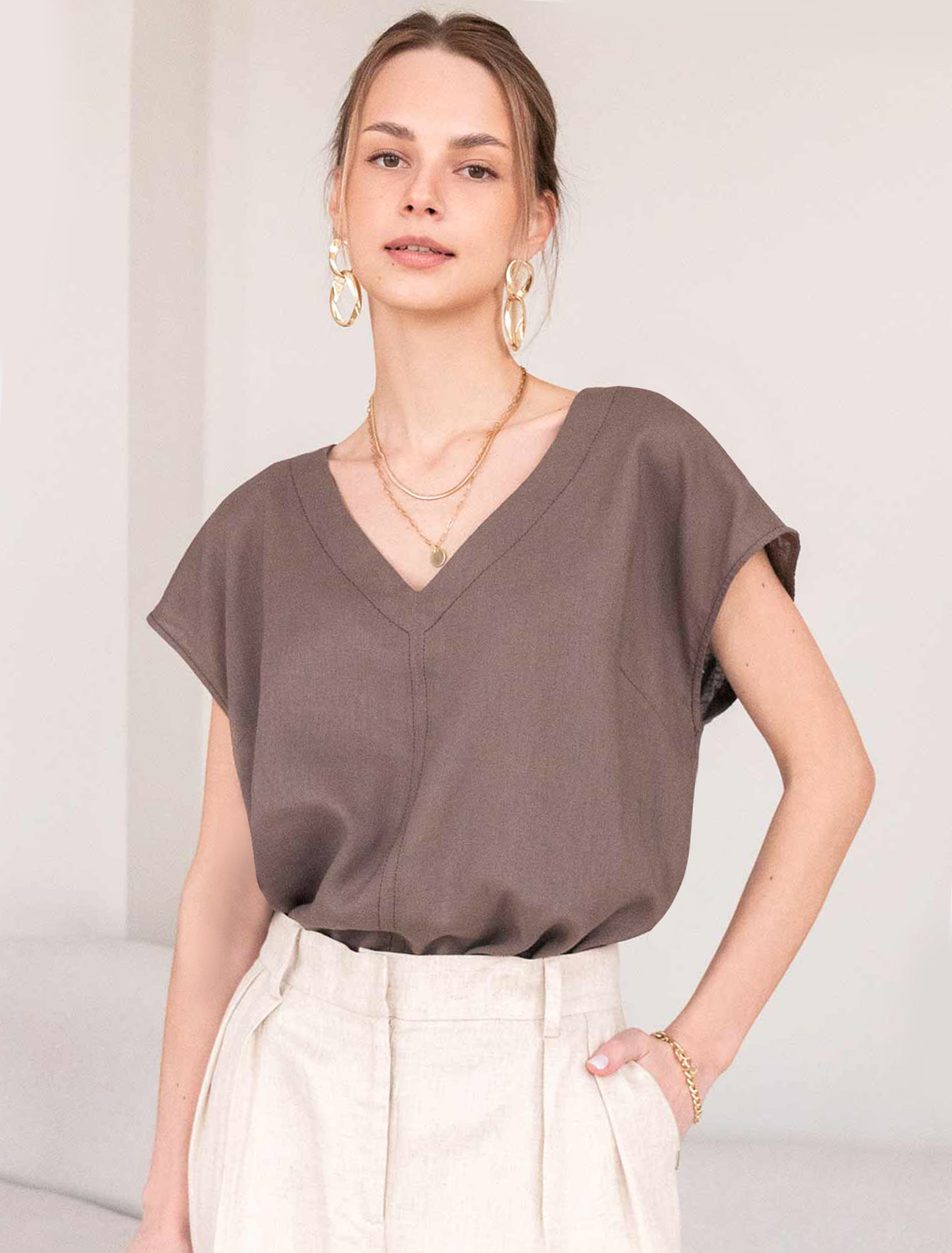Свободная блузка-топ с цельнокроеным рукавом. В основе только натуральный лён с добавлением вискозы: дышащий и гипоаллергенный. Ткань прочная и приятая на ощупь, хорошо держит форму. Модель дополнена небольшими разрезами по бокам и удлиненной спинкой. Сочетайте в костюме с брюками D24.519 и D24.520, с шортами D28.319 и юбкой D26.447 80%Лен 20%Вис
