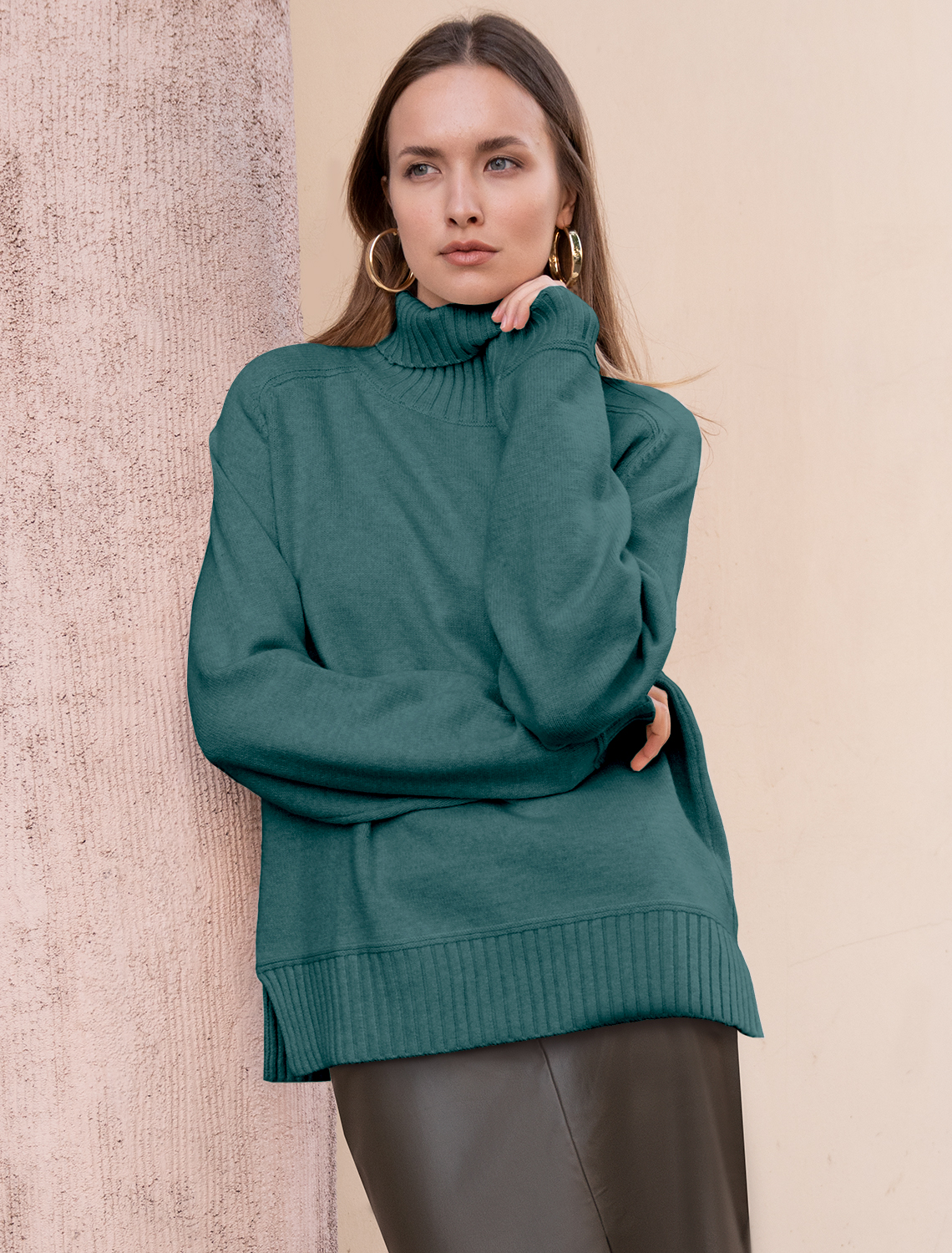 Лаконичный свитер с длинными рукавами и воротником стойка, выполнен из мягкой пряжи с добавлением нежного кашемира и ангоры. Сохраняет тепло, не перегревая при этом, и особенно приятно ощущается на коже, поэтому модель комфортно носить на голое тело. В комплекте с брюками D38.008 или D38.009 соберите роскошный костюм в расслабленном стиле. 52%ПАН (акрил) 28%ПЭ 8%ПУ 7%Кашемир 5%Ангора