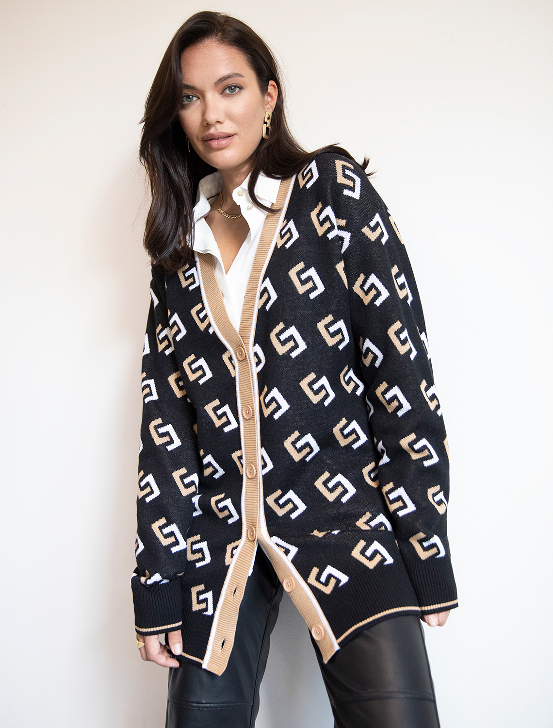 Кардиган выполнен двухслойной вязкой из хлопковой пряжи с добавлением акрила. В гармоничном сочетании черного, бежевого и белого, роскошный жаккардовый узор дополнит сдержанную классику. Совет стилиста: в офисном дресс-коде, хорошо сочетать кардиган с летящей блузкой из вискозы и брюками, в более расслабленном варианте, можно носить на голое тело с низами из эко-кожи. Изделие совершенно не колется и приятное к коже. 55%Хлопок 45%ПАН (акрил)