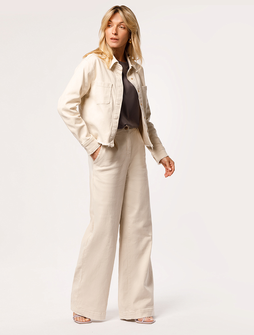 Джинсы-палаццо - трендовая свободная модель исполнена в эластичном дениме. Комфортная посадка на талии и широкий крой визуально вытягивают ноги, скрывая недостатки фигуры. Отлично сочетаются в расслабленном образе с любым верхом. В костюме total-denim с курткой-жакетом D51.013 и курткой-рубашкой D59.010 98%Хлопок 2%ПУ