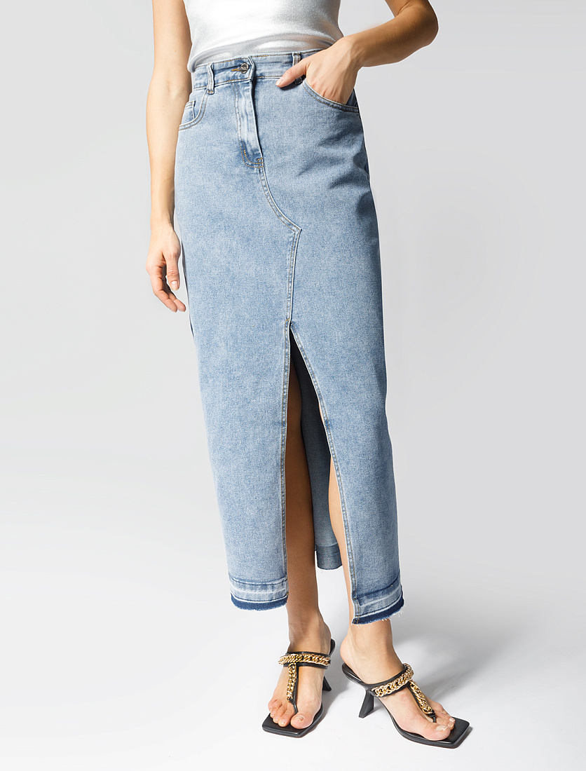 Длинная юбка с декоративной стиркой по низу выполнена из мягкого эластичного денима. Трендовый высокий разрез спереди добавляет чувственный характер лаконичному изделию и не сковывает шаг при ходьбе. Подходит для любой фигуры. 80%Хлопок 18%ПЭ 2%ПУ