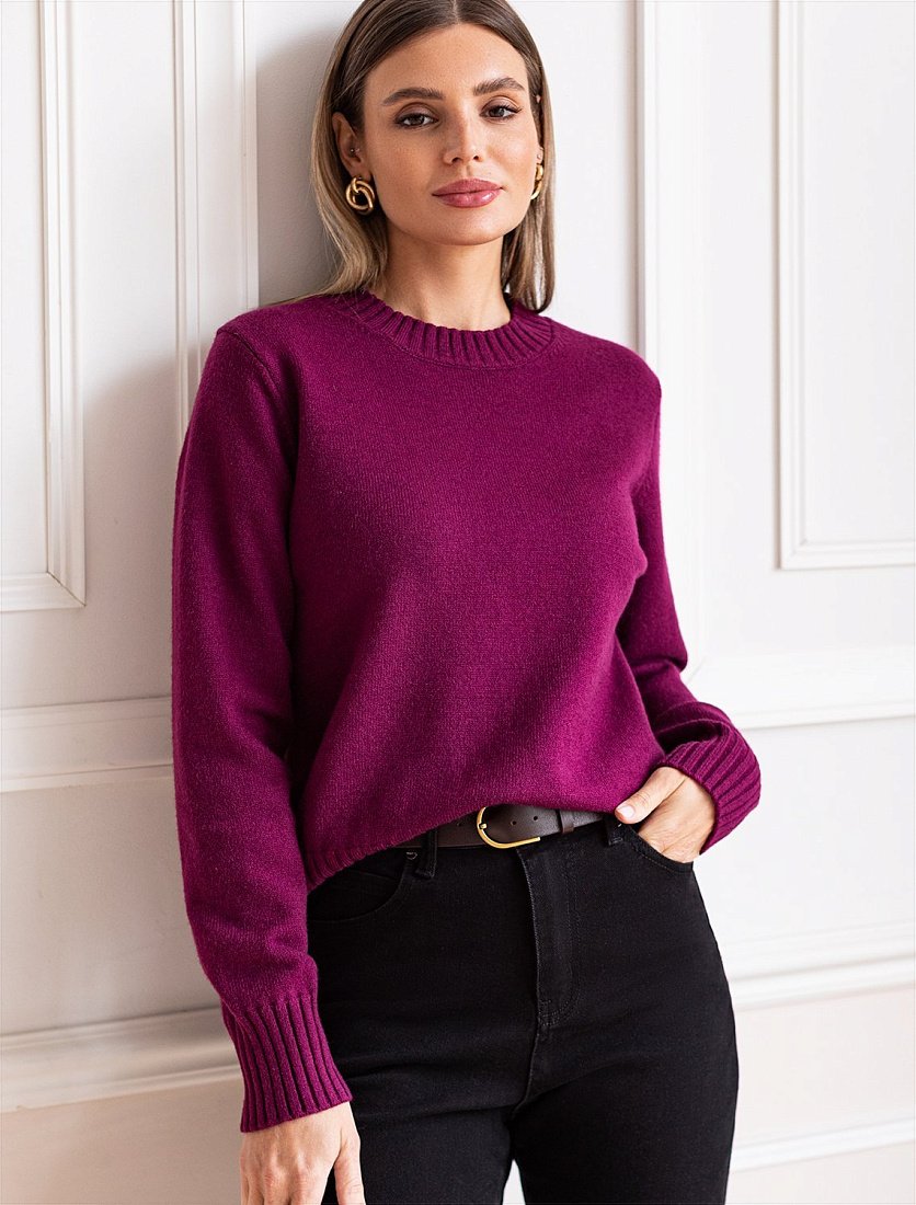 Укороченный джемпер выполнен из пряжи с кашемиром. Нежная пряжа приятно ощущается на теле, сохраняя комфортное тепло, при этом не перегревая. Лаконичная модель хорошо будет сочетаться с широкими джинсами или прямыми брюками, с пышной юбкой, не нарушая стилистику гардероба. Изделие украшено металлическим логотипом бренда. 52%ПАН (акрил) 33%ПЭ 8%ПУ 7%Кашемир