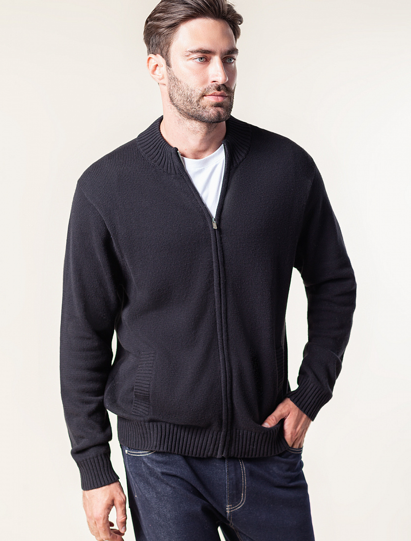 Кардиган плотной вязки из хлопковой пряжи с добавлением акрила. Модель дополнена боковыми карманами и застежкой на металлическую молнию. Изделие гармонично дополнит как повседневный образ, так и нестрогий офисный комплект, с рубашками, футболками или водолазкой. Внизу пришит металлический логотип бренда. 60%Хлопок 40%ПАН (акрил)
