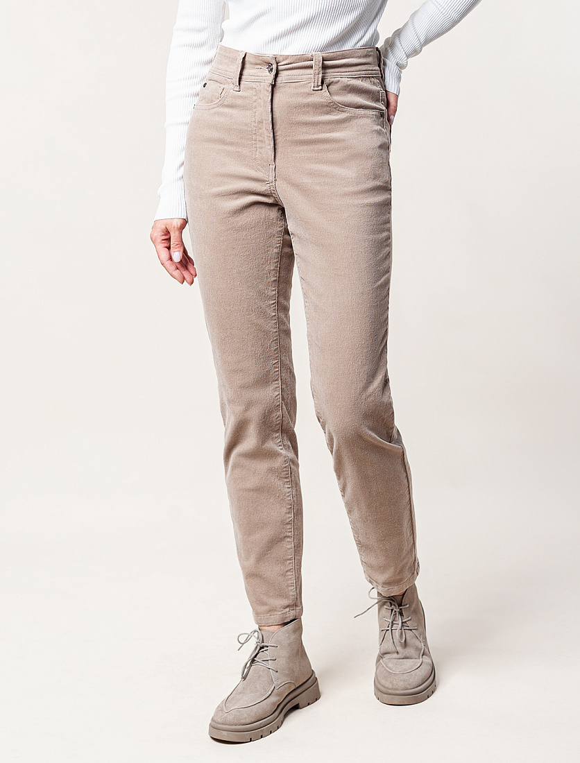 Брюки выполнены из мягкого хлопкового микро-вельвета с добавлением эластана. Изделие комфортно садится по фигуре и не сковывает движения. Модель с пятью карманами, как у джинсов-скинни дополнена высококачественной фурнитурой с фирменным логотипом бренда. Хорошо комбинируется с вязаным трикотажем, блузками и денимом. Как альтернатива брюкам, в нестрогий офисный дресс-код. 98%Хлопок 2%ПУ