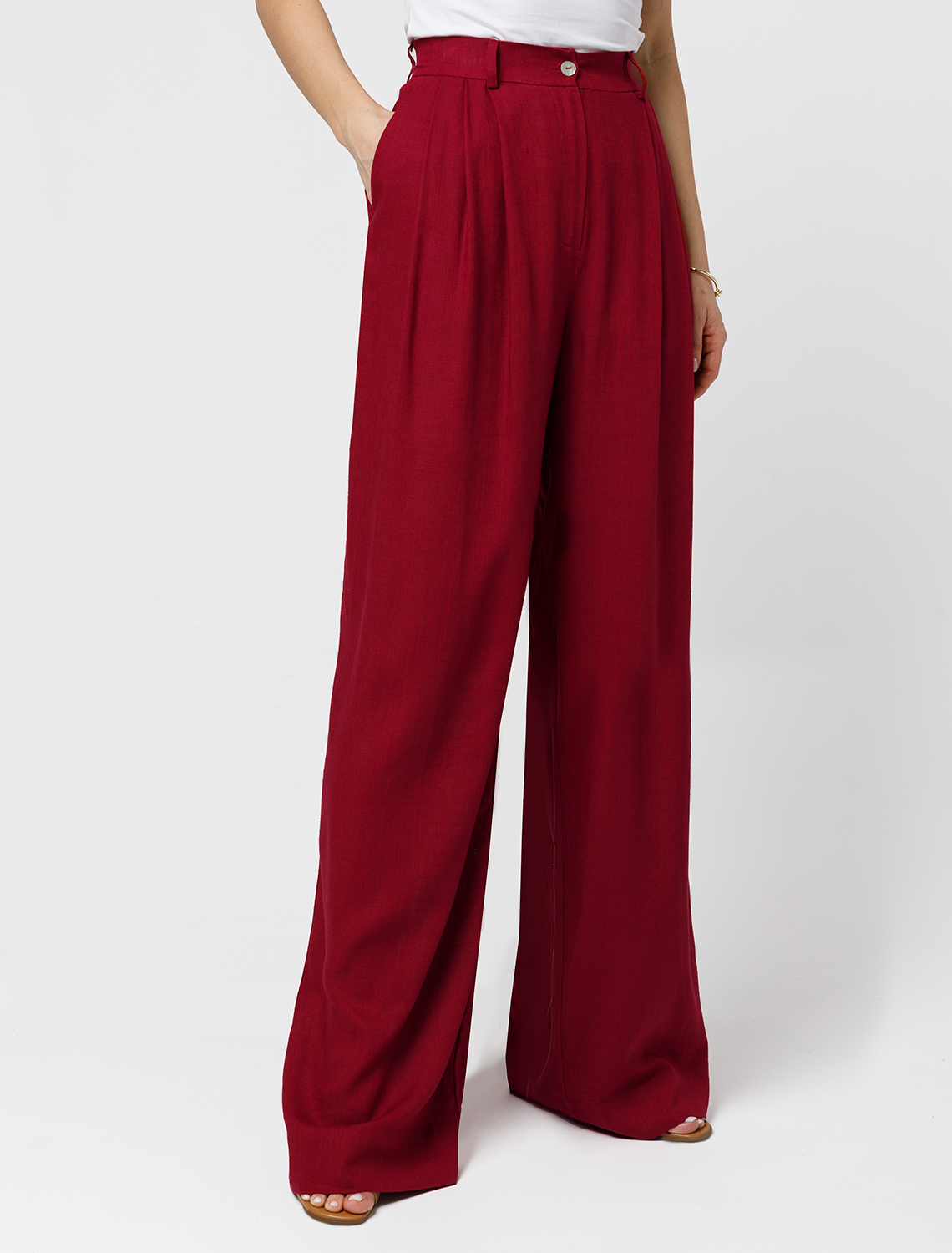 Брюки-палаццо выполнены изо льна с вискозой. Свободная модель с посадкой на талии визуально вытягивает силуэт и создает роскошный образ. Ткань изящно драпируется, струится по ногам, почти не мнется и сохраняет форму в течении долгого времени. Подходит для любой фигуры и скрывает недостатки. Сочетается в костюме с топом D23.060 и блузками D29.237, D29.244 70%Вис 30%Лен