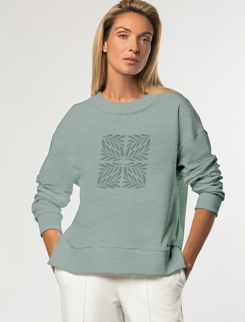 Свитшот выполнен из эластичного футера двухнитки. Изделие дополнили лаконичным авторским принтом. Расслабленный стиль поддерживает спущенная линия плеча, свободный силуэт и разрезы по бокам. Модель сочетается в костюме с брюками D44.135, D44.136, D44.137 и юбкой D46.034 75%Хлопок 20%ПЭ 5%ПУ